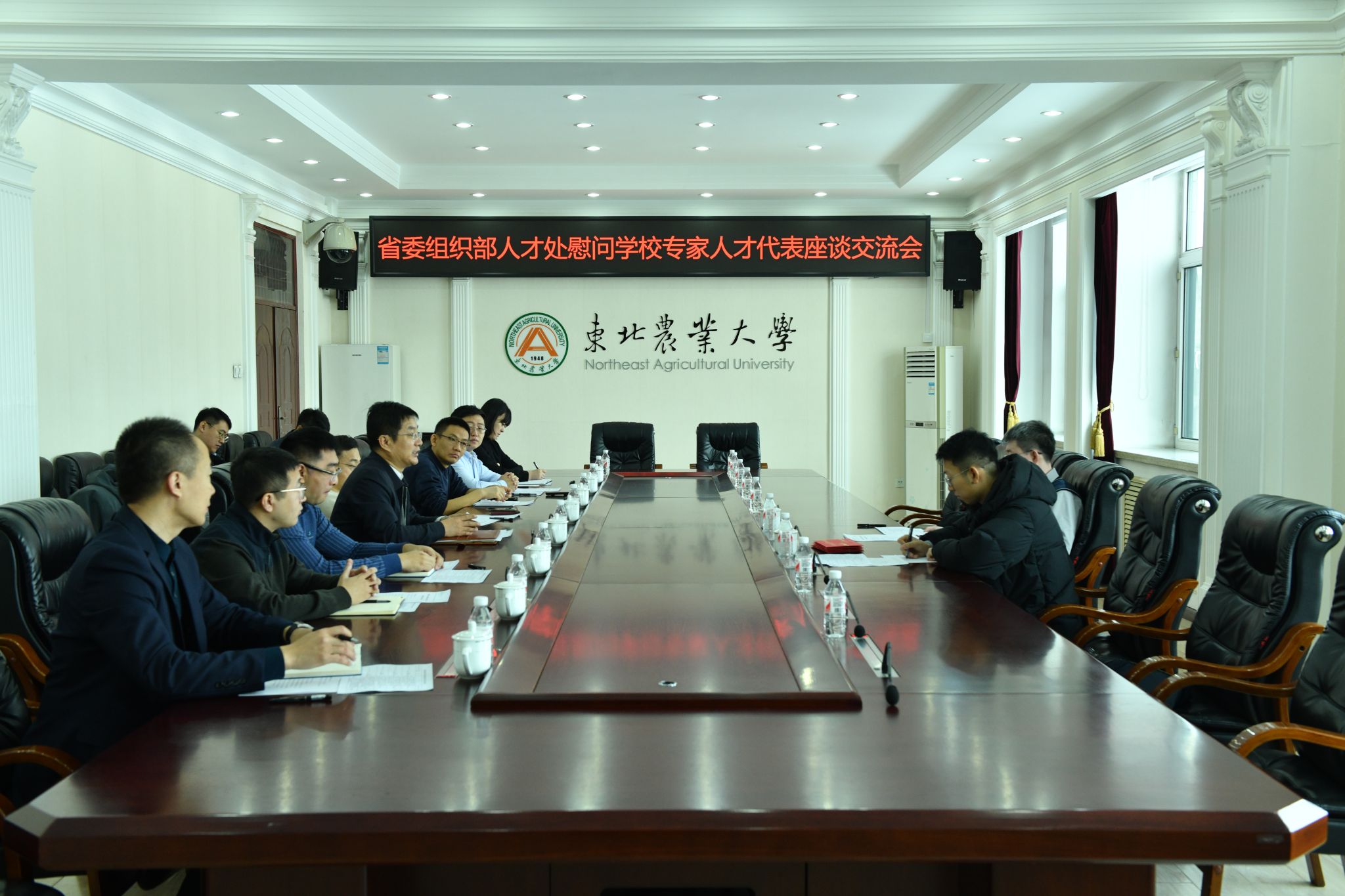 1月22日上午,省委组织部人才工作二处处长李铭超、三级主任科员张智博到我校慰问专家人才代表,校党委副书记贺景平,组织部部长吴立全、副部长王磊参加走访慰问。