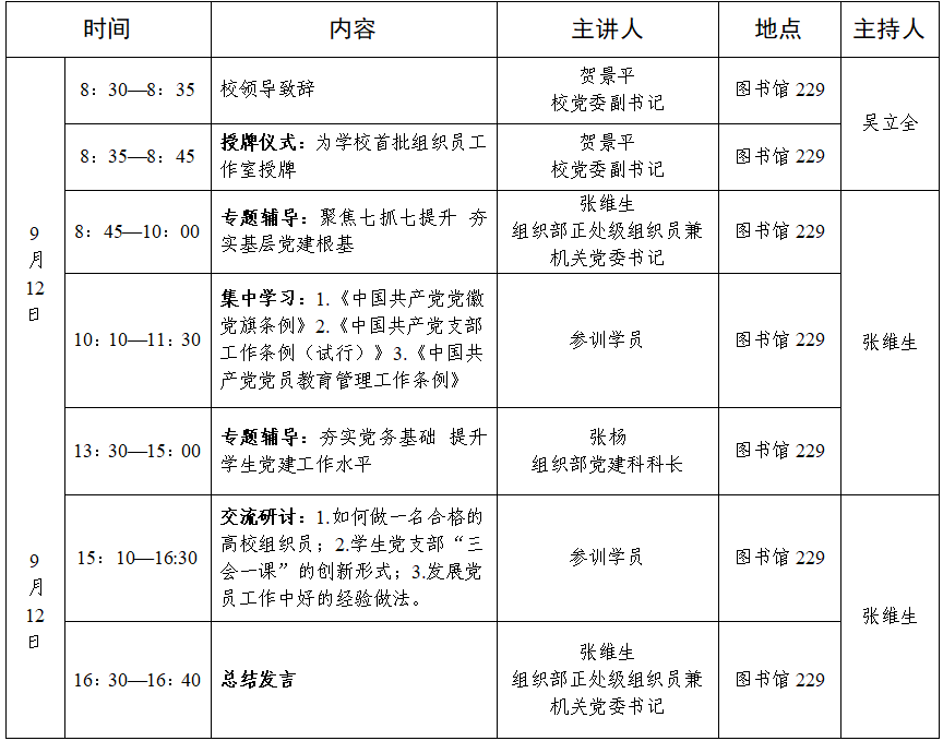 (一)请各相关单位认真做好通知工作,于9月10日(星期三)上午11:00前,将参训回执发送至组织部邮箱。