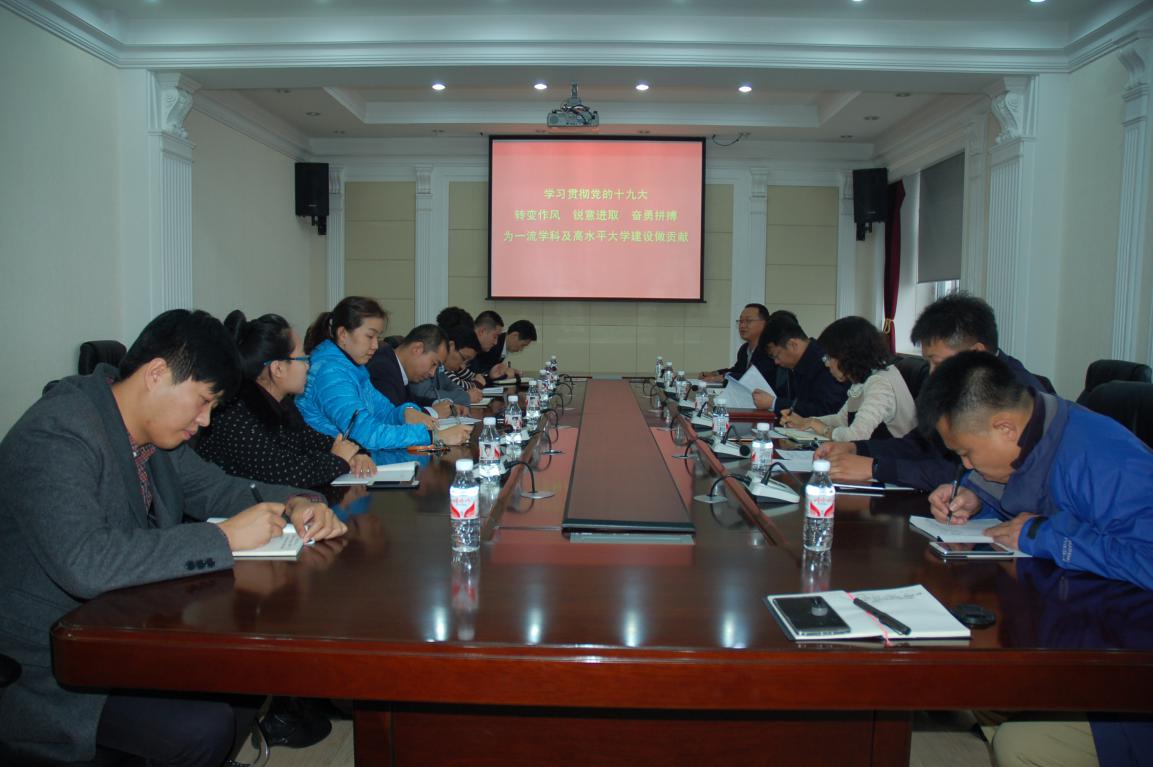 为学习领会十九大报告精神,落实省委高校工委高校作风整顿第三阶段工作推进会精神,10月20日下午3:00在主楼610会议室,党政办支部全体党员开展了专题党课活动。副校长、马克思主义学院院长苑芳江同志应邀为党政办支部全体党员讲了一堂生动的党课。
