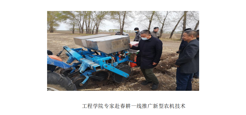 充分发挥科技优势,在学以致用上下功夫,农学院组织20余位专家教授深入田间一线指导玉米、水稻、马铃薯和杂粮种植、病害防治,在《奋斗》杂志“打好种业翻身仗”栏目发表文章,助力“备春耕”,切实解决群众困难,为农民春耕保驾护航;资源与环境学院将科技送到田间地头,累计开展农业科技专题培训10余场,推动解决种养结合,低产农田土壤改良与地力提升,农作物减肥增效、寒地水稻氮肥施用等问题;工程学院组织10余名专家赴海伦、庆安、建三江等地,推广新型农机技术,指导农民科学化播种,助力农业机械化科学发展,开展“农民田间课堂”培训技能,现场做演示推动乡村振兴产业发展。